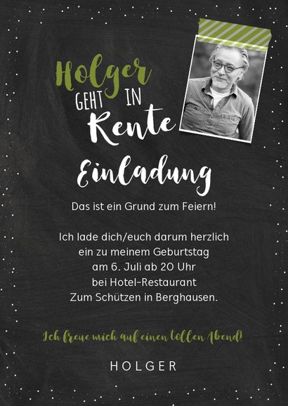 Einladungskarte Pensionsfeier Foto Goldlook Kaartje2go